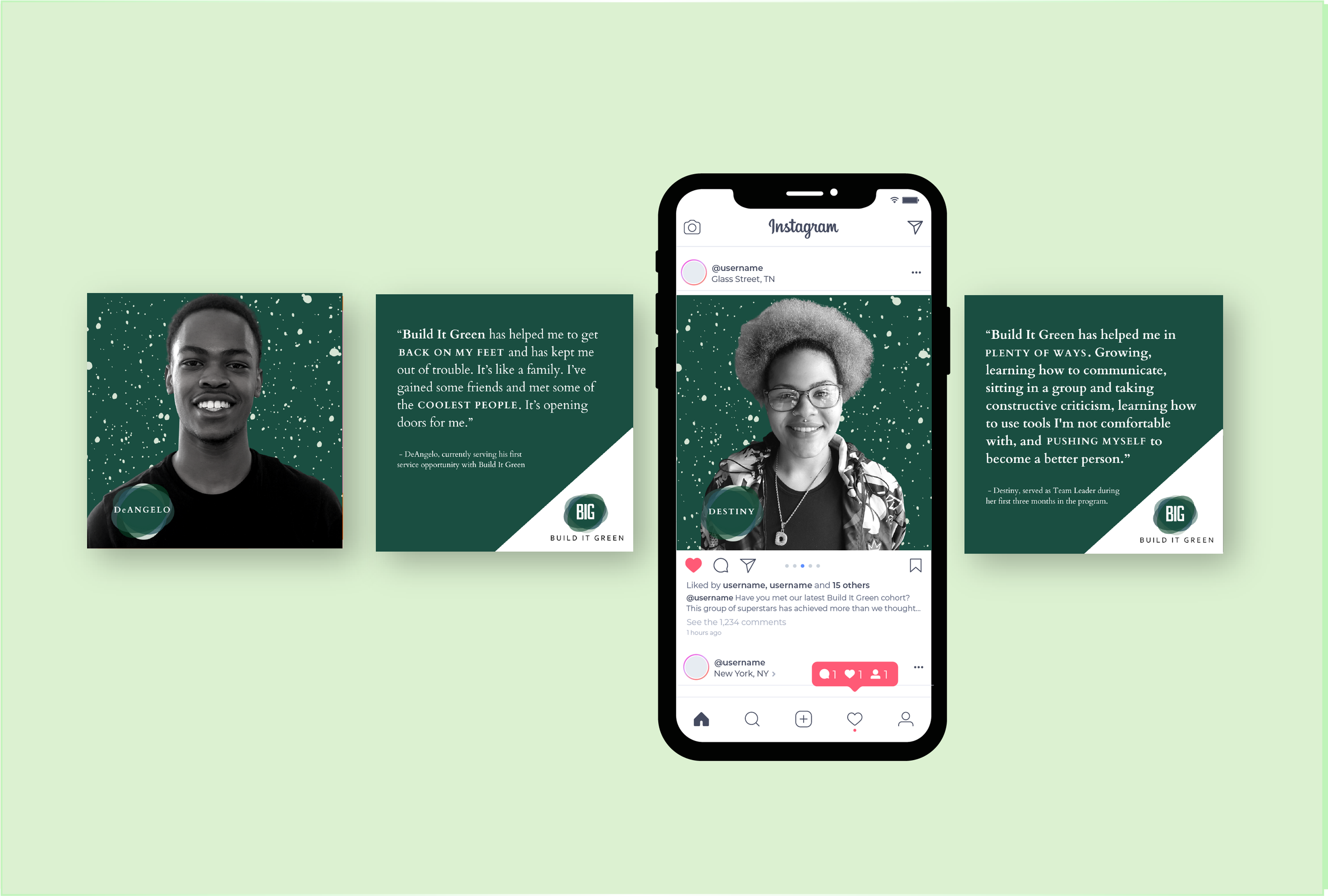 I was asked to create a “face” for BIG, and decided to let the members do the talking. Interviewing and photographing these fresh faces was a joy. Pairing their portraits and quotes illustrated the program’s impact, making it more relatable.