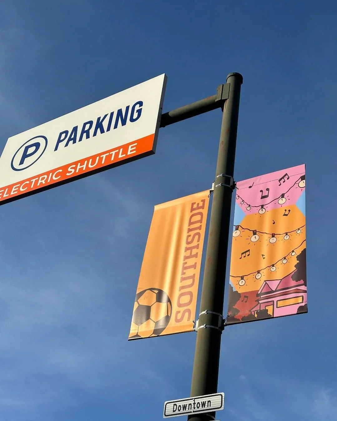 Goal was to celebrate and serve as an identifier for the Southside District: a neighborhood known for its vibrant music scene, pop-up soccer games, and DIY block parties.